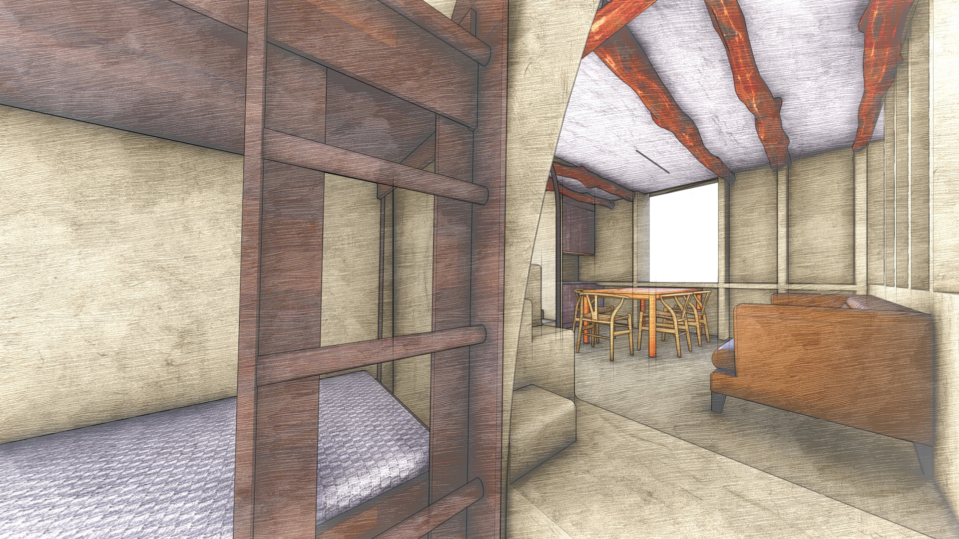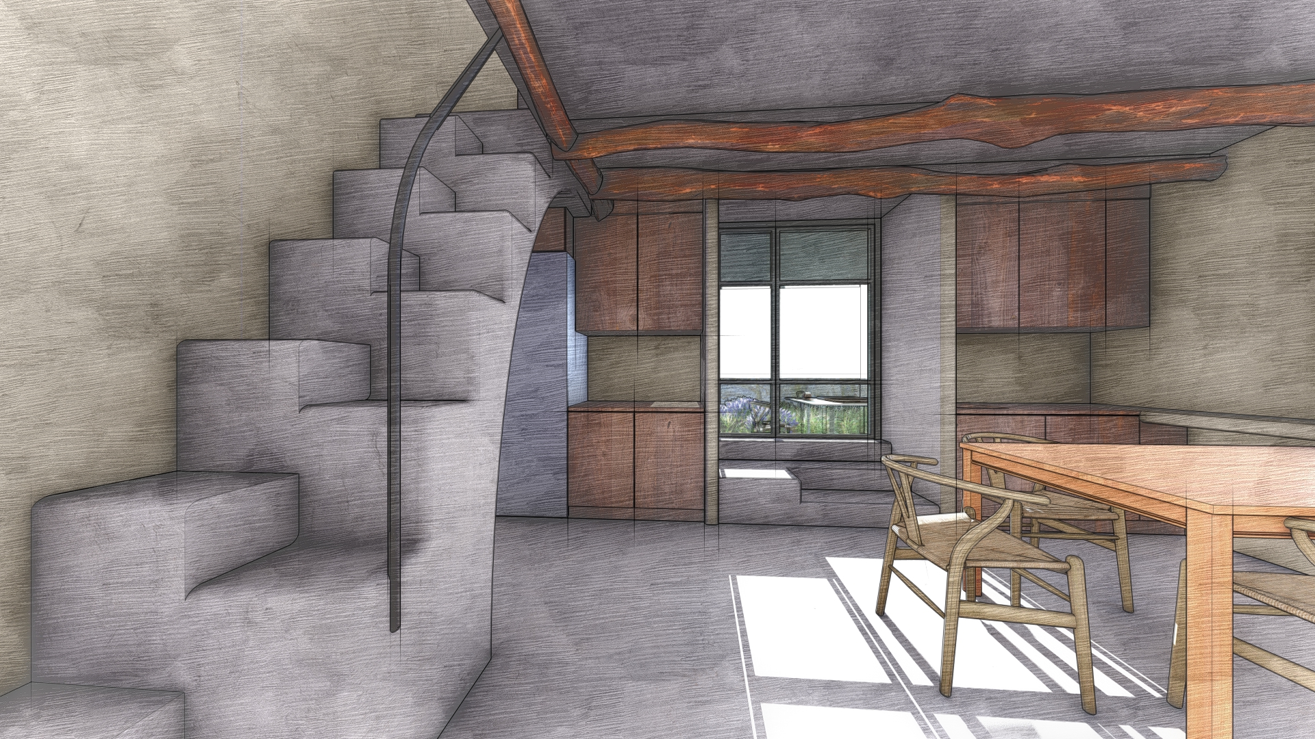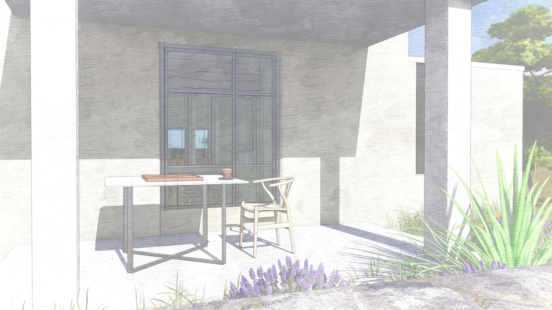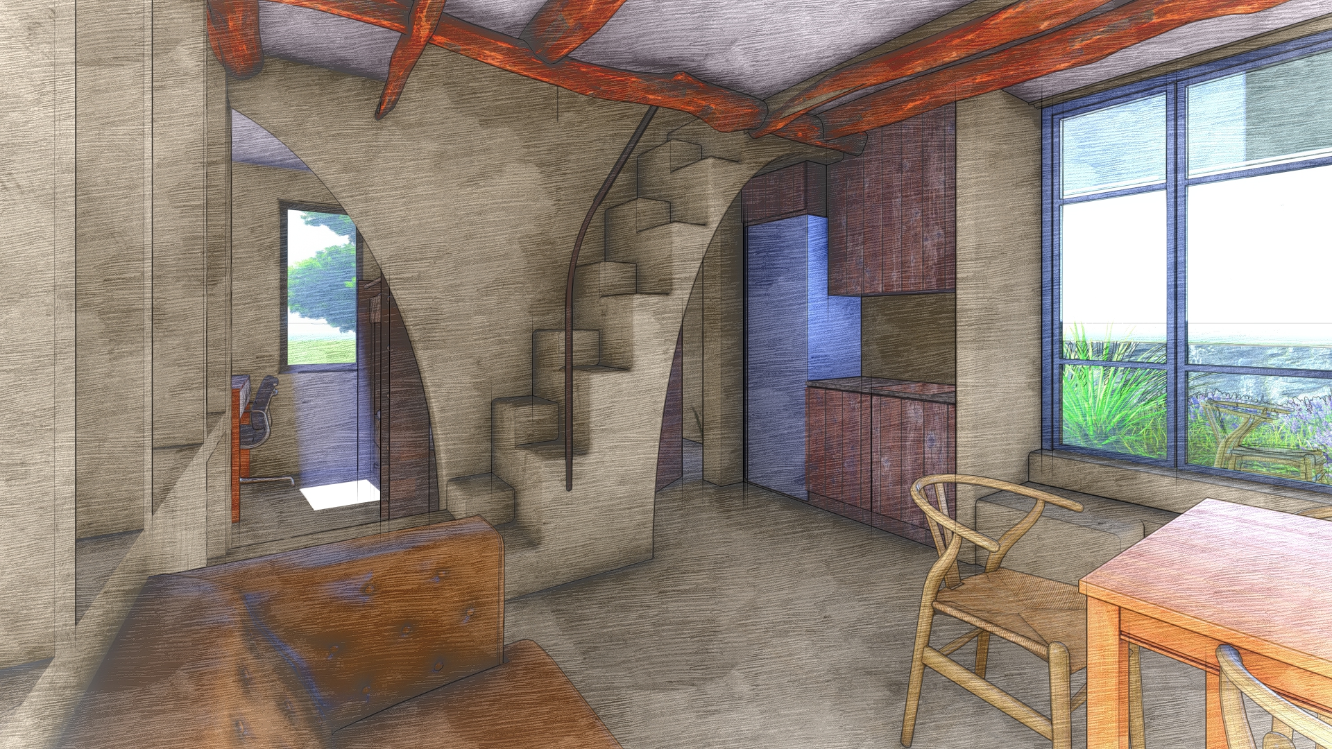 Se busca crear un espacio mínimo para disfrutar del entorno, respetando la construcción existente protegida, con intervenciones respetuosas y centradas en el interior.